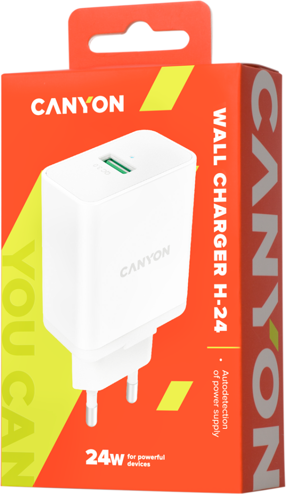 Зарядний пристрій Canyon Wall charger with 1*USB, QC3.0 24W (CNE-CHA24W)