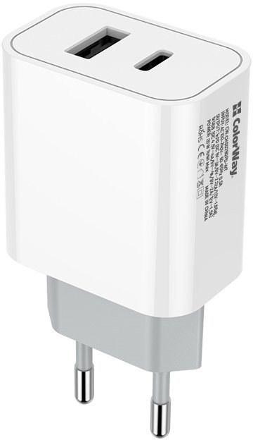 Зарядний пристрій ColorWay Type-C PD + USB QC3.0 (20W) V2 white (CW-CHS025QPD-WT)