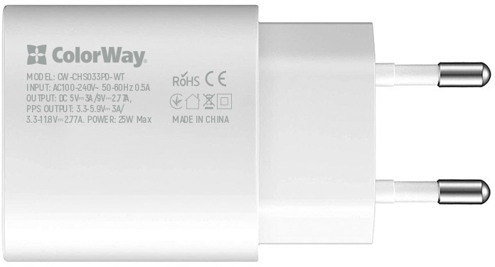 Зарядний пристрій ColorWay Power Delivery Port PPS USB Type-C (25W) white (CW-CHS033PD-WT)