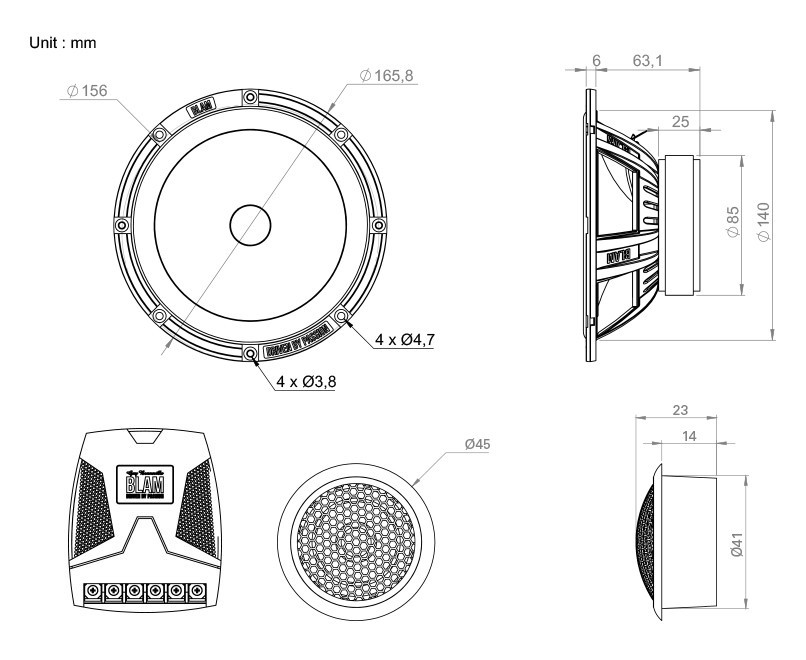 Діаметр ВЧ-динаміка - 45 мм / Глибина — 14 мм /,