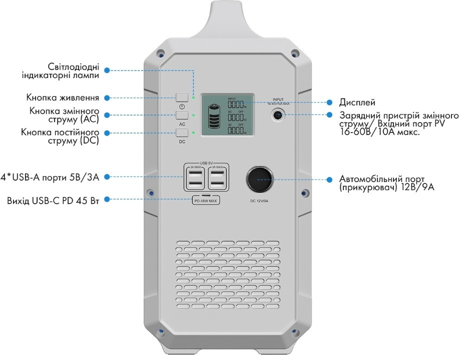 Потужність заряджання (розетка) - 160 Вт,