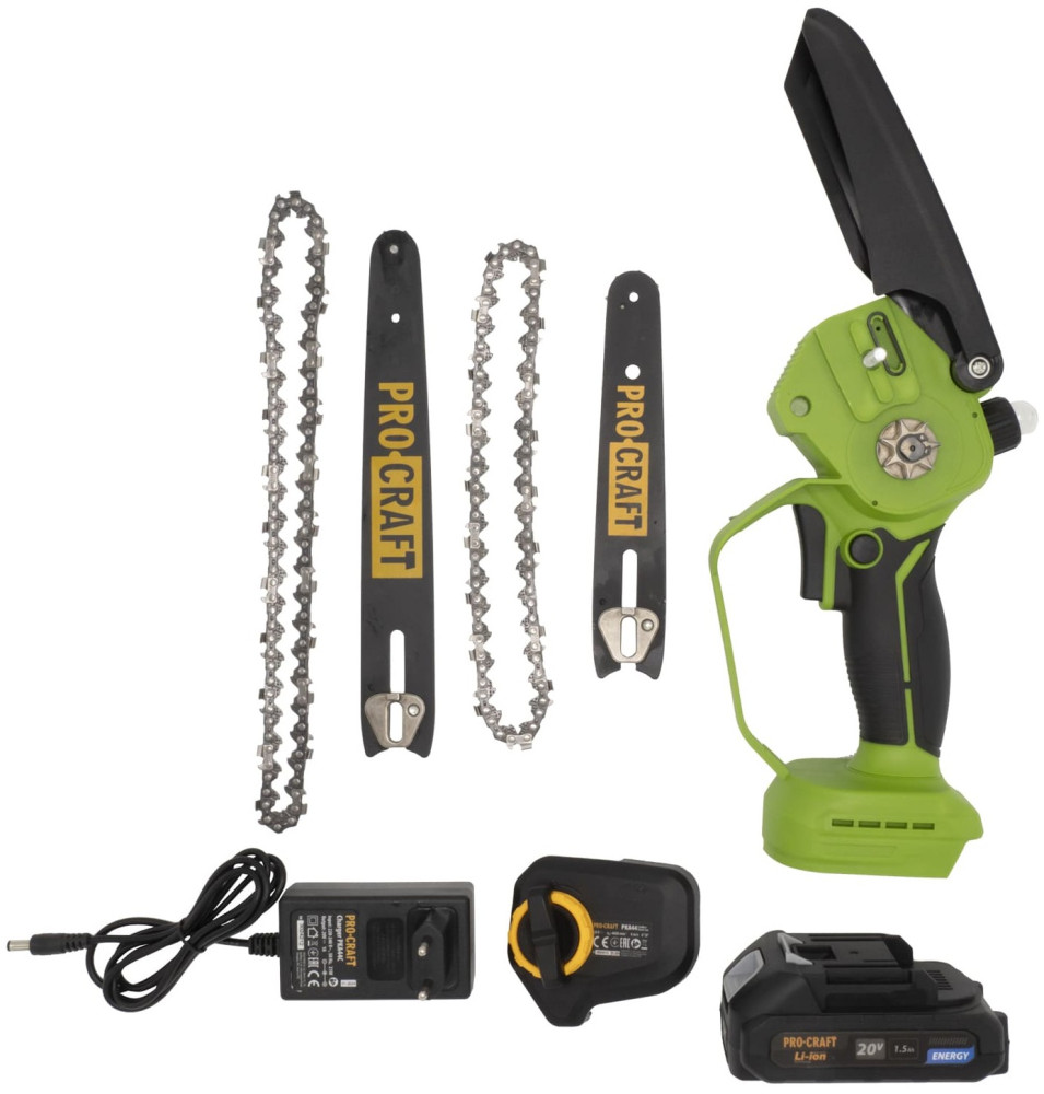 Аккумуляторная пила цепная Procraft PKA44 2Ач (бесщеточная, 2 шины (152 и 203 мм), 2 цепи, 1 АКБ, 1 ЗУ)