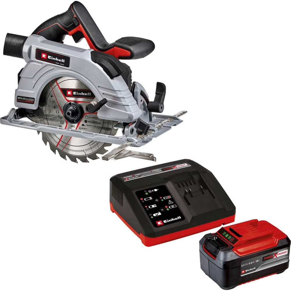 Пила циркулярна Einhell TE-CS 18190 Li BL - Solo акум., PXC, 18В, безщітк., 3800 обхв, диск 190х20 мм, 3.23 кг (без АКБ і ЗП)