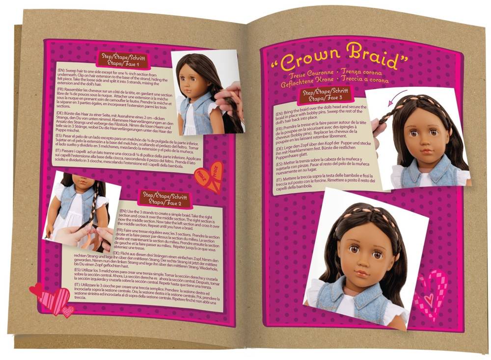 У комплекті з лялькою - расческа, 2 пряди волос, 2 заколки, руководство по прическам,