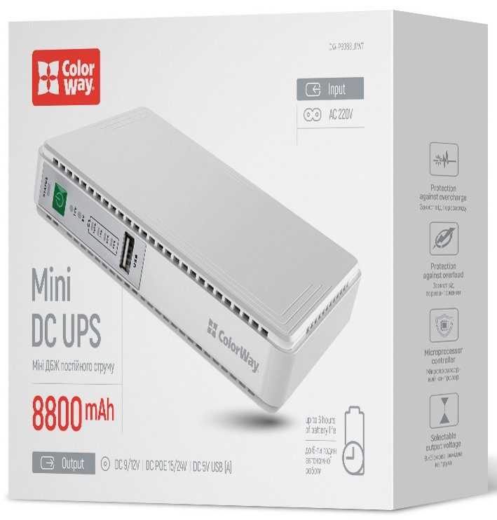 Пристрій безперебійного живлення ColorWay CW-PB088LI1WT 21W (CW-PB088LI1WT)