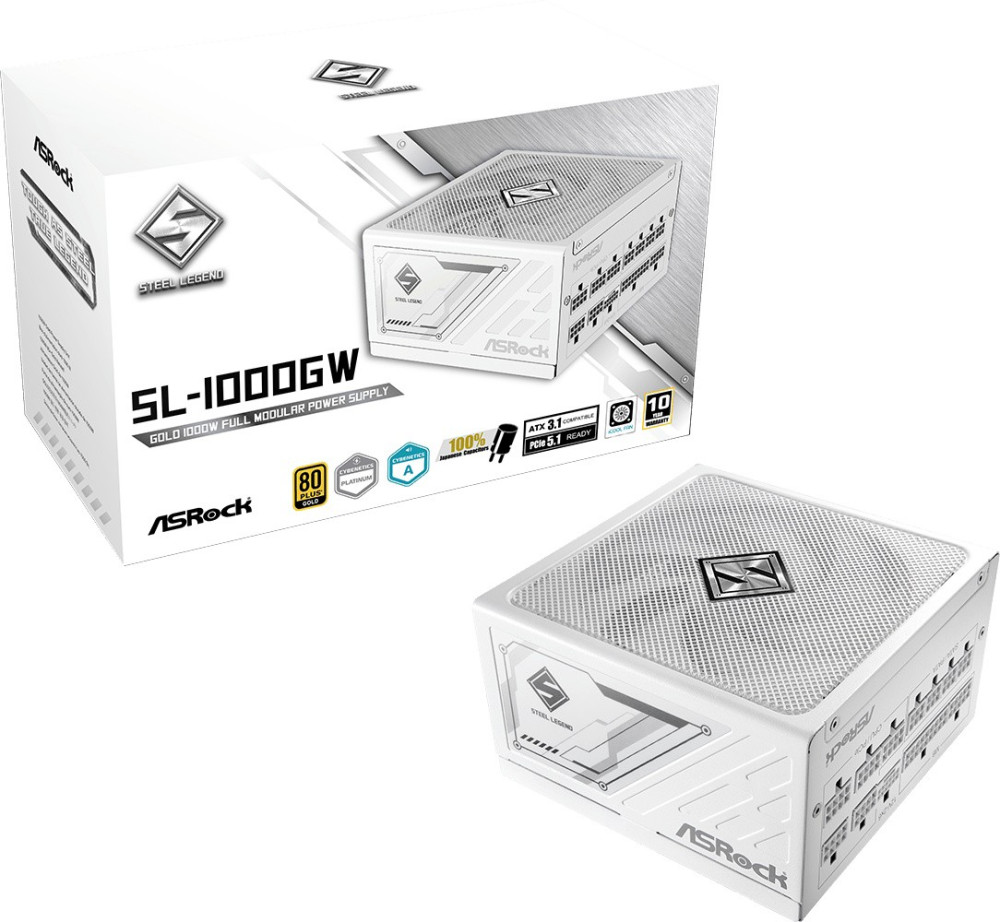 БЖ 1000W ASRock SteelLegend White SL-1000GW ATX 3.1 135mm, 80+ Gold, Fully Modular, Retail (SL-1000GW)