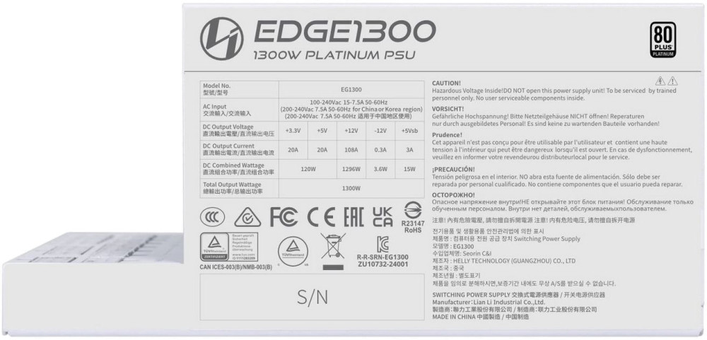 Блок живлення Lian Li Edge EG1300 White (G9P.EG1300.WE00.EU)