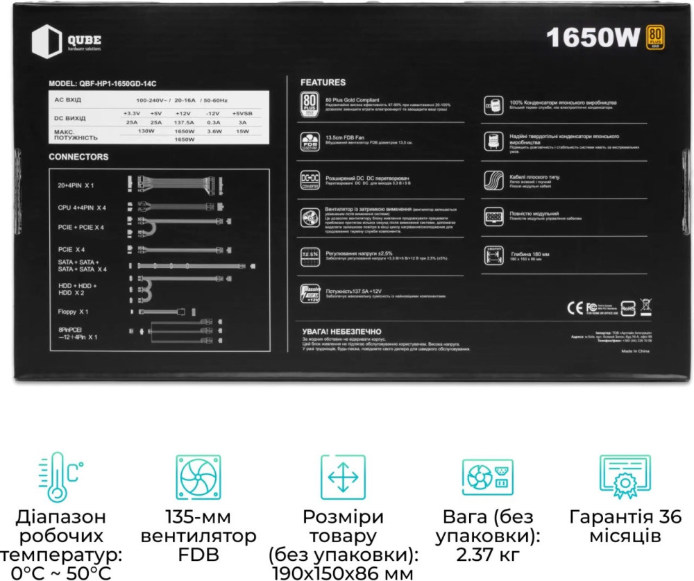 Блок живлення QUBE QBF-HP1 QBF-HP1-1650GD-14C