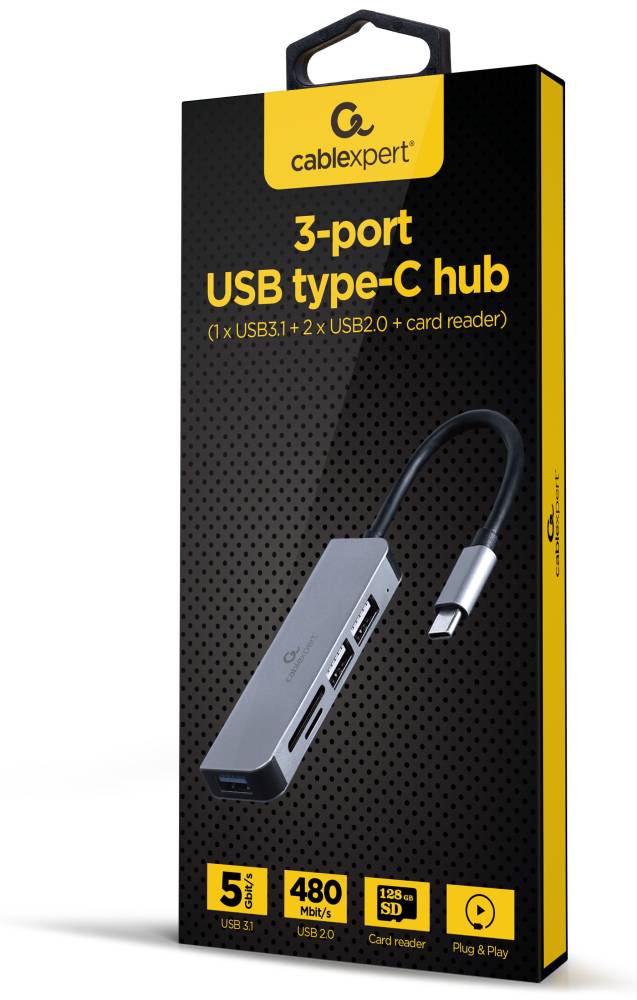 Концентратор Cablexpert USB-С to 1 х USB 3.1 Gen1 (5 Gbps), 2 х USB 2.0, CardReader (UHB-CM-CRU3P1U2P2-01)