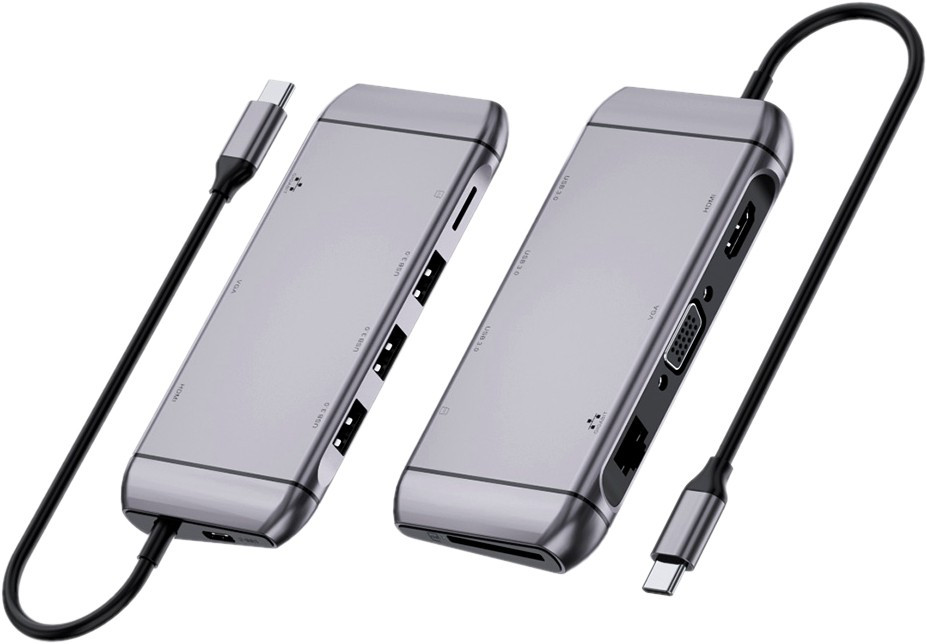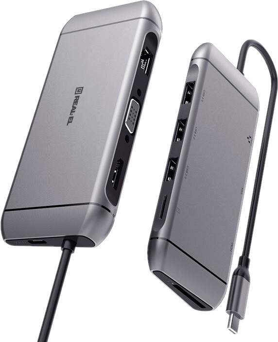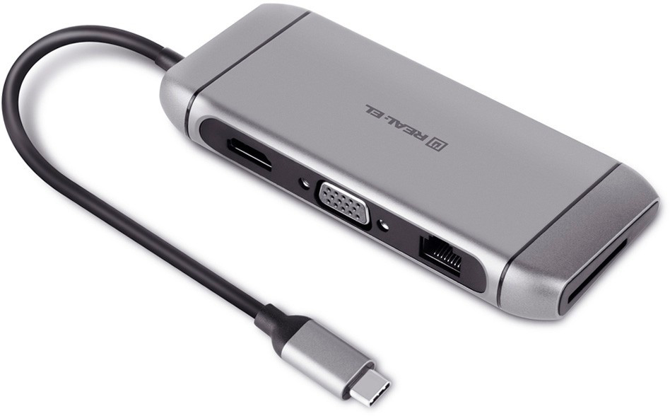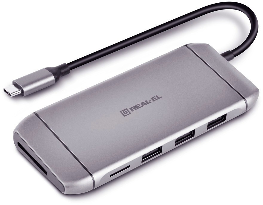 Type C мультифункциональная док-станция REAL-EL CQ-900 (3×USB A 3.0, HDMI, RJ45, SD, micro SDTF, VGA,Type C)