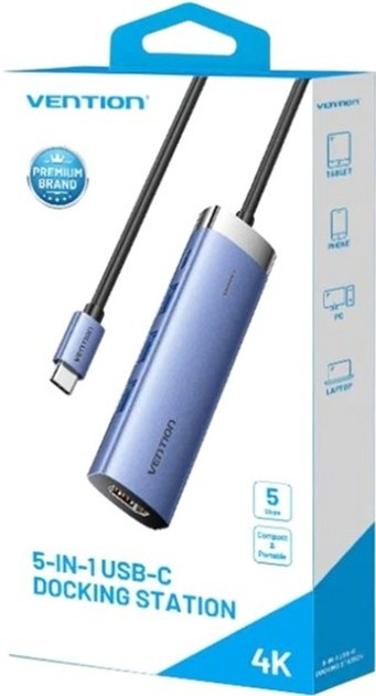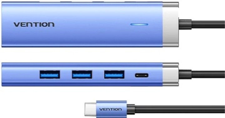Док-станція USB3.1 Type-C --> HDMIUSB 3.0x3PD 100W Blue Aluminum Alloy Hub 5-in-1 Vention (TGESB)