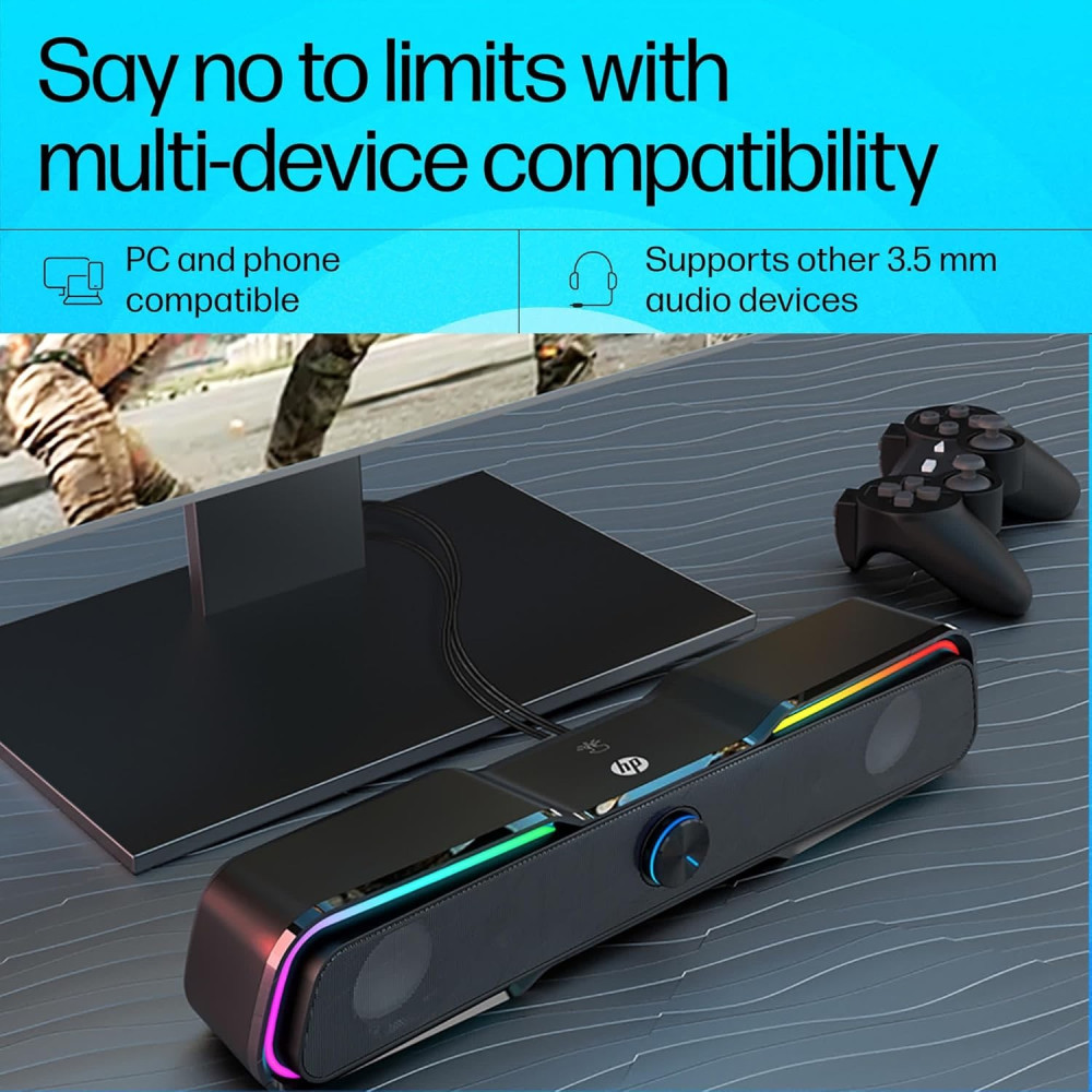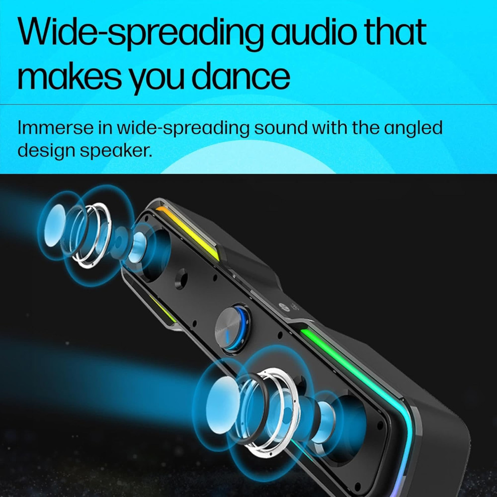 Акустична система 2.0 HP DHE-6002, 3,5мм + USB, 6Вт, Sound Bar LED RGB