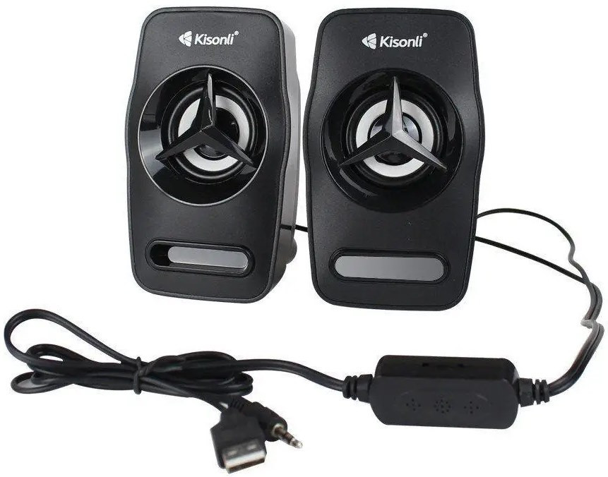 Колонки 2.0 Kisonli L-3030 для ПК и ноутбука, USB + 3.5mm, 2x3W, 20Hz- 20KHz, 20X11X13mm, black
