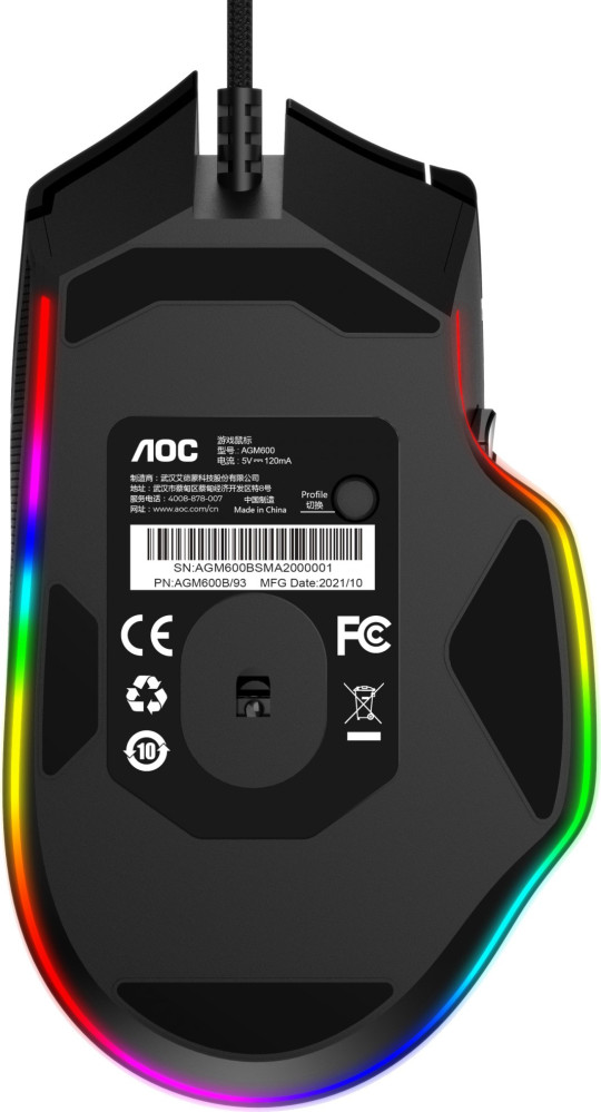 Мишка AOC AGM600 RGB PMW3389 Kailh switch USB Black (AGM600B)