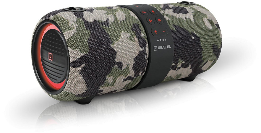 Колонка REAL-EL X-733 camo (24Вт, Bluetooth, USB, AUX, 3600мА*час)