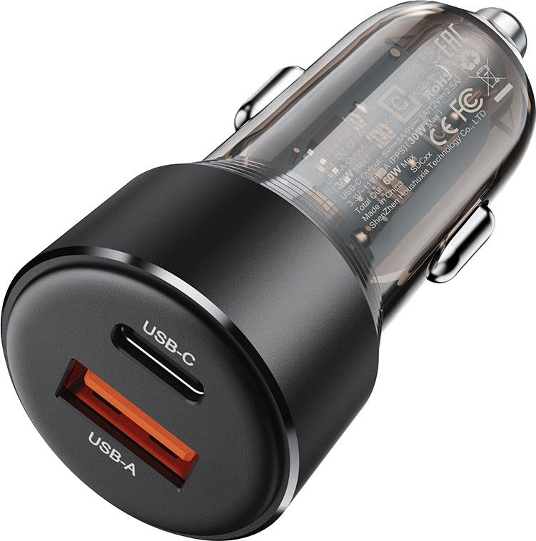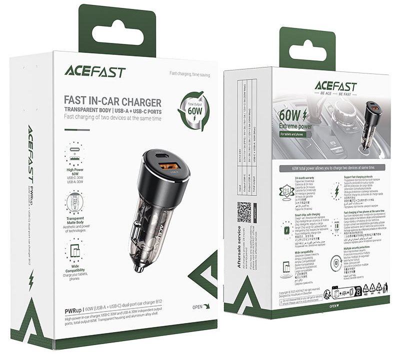 ACEFAST B12 60W (USB-A+USB-C) dual-port car charger Black (6974316282914)