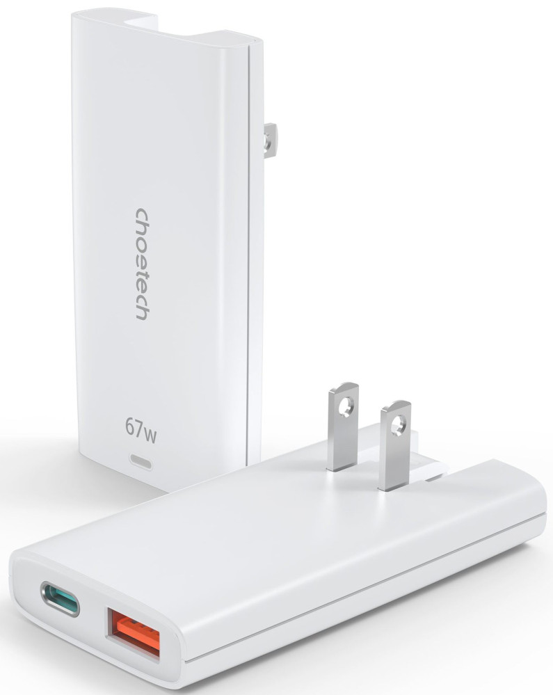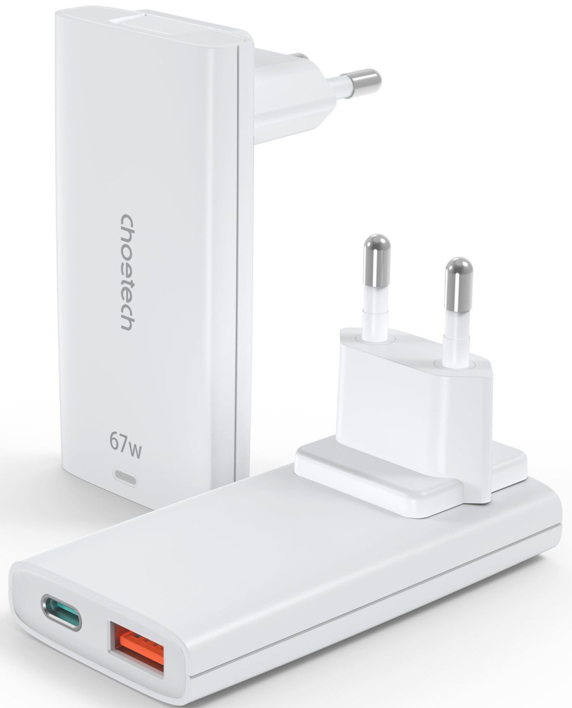 Зарядний пристрій Choetech 2xUSB 65W GaN (USB-C+USB-A) Ultra thin (PD6011-EU-WH)