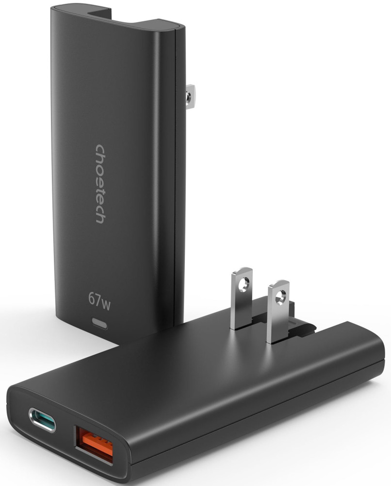 Зарядний пристрій Choetech 2xUSB 65W GaN (USB-C+USB-A) Ultra thin (PD6011-EU-BK)