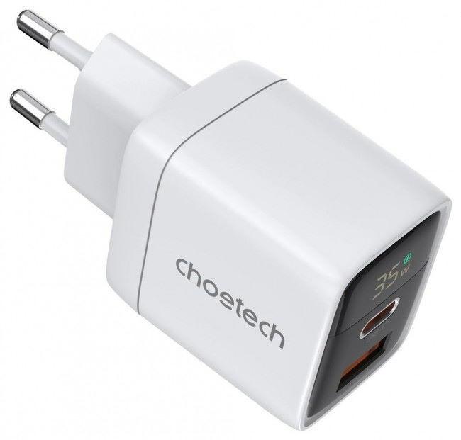 Мережевий зарядний пристрій Choetech PD6052 PD35W GAN A+C White (43-00128)
