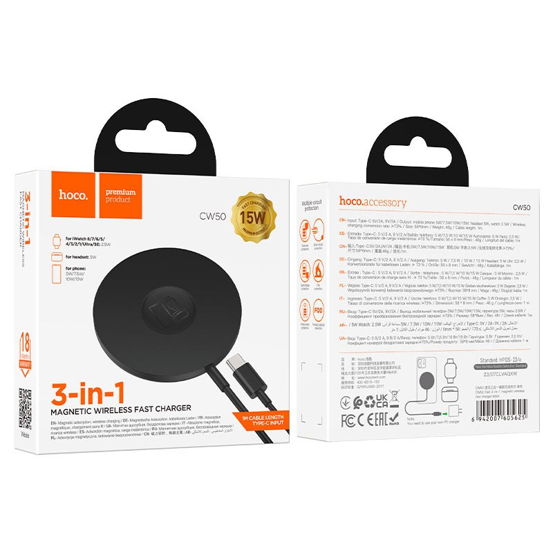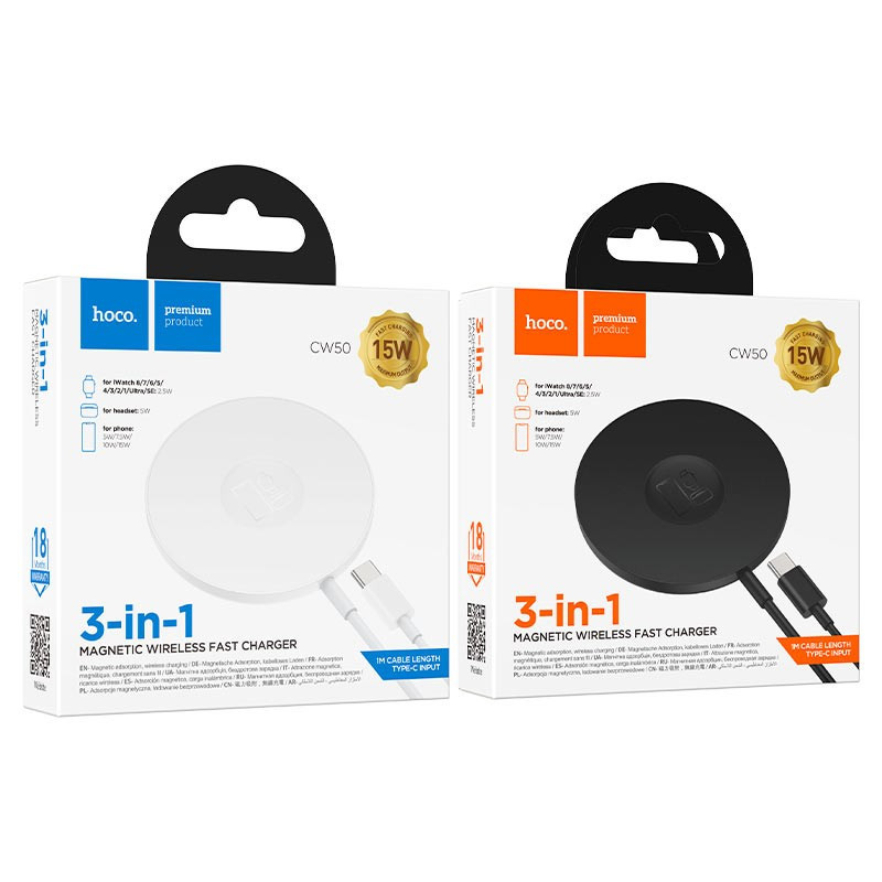Зарядний пристрій бездротовий 3 в 1 Hoco CW50 Fast 3-in-1 magnetic 15W