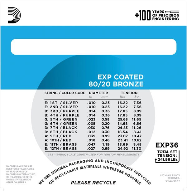 Струни DAddario EXP Coated 80/20 Bronze 12-String 10-47 (EXP36)