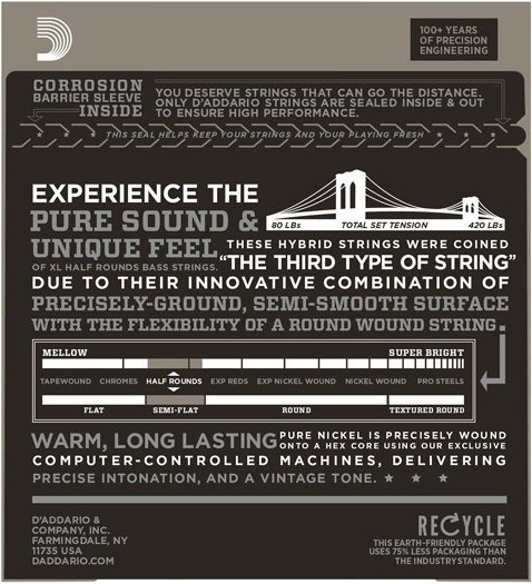 Струни DAddario XL Half Rounds Bass 45-100 (ENR71)