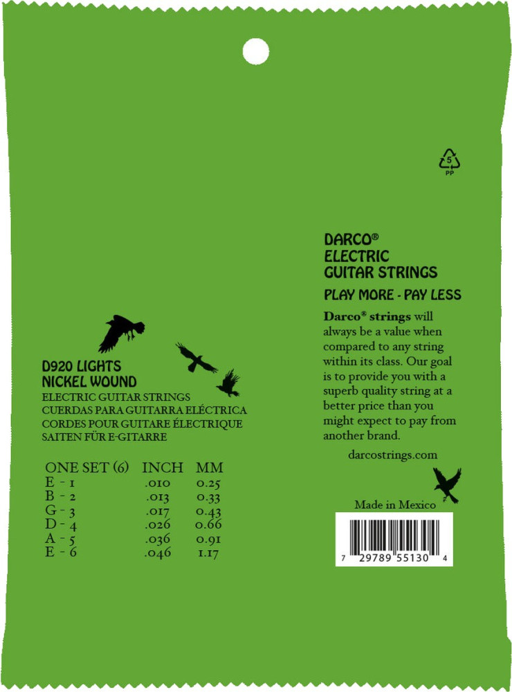 Діаметр струн - .010 .013 .017 .026 .036 .046 ",