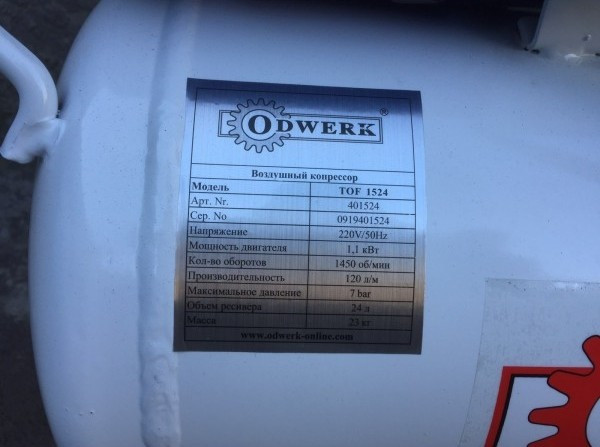 Компресор Odwerk TOF 1524 24 л мережа (230 В) (401524)