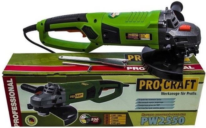 Машина угловая шлифовальная ProCraft PW-2550 230 мм (Плавный пуск, поворотная ручка) +сертификат