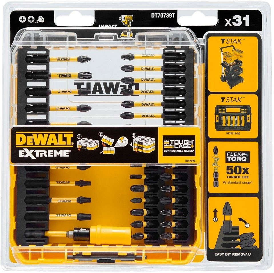 Набір біт DeWALT EXTREME FLEXTORQ, Phillips, Pozidriv, Torx, T25, L = 25,57 мм, 31 шт, кейс (DT70739T)