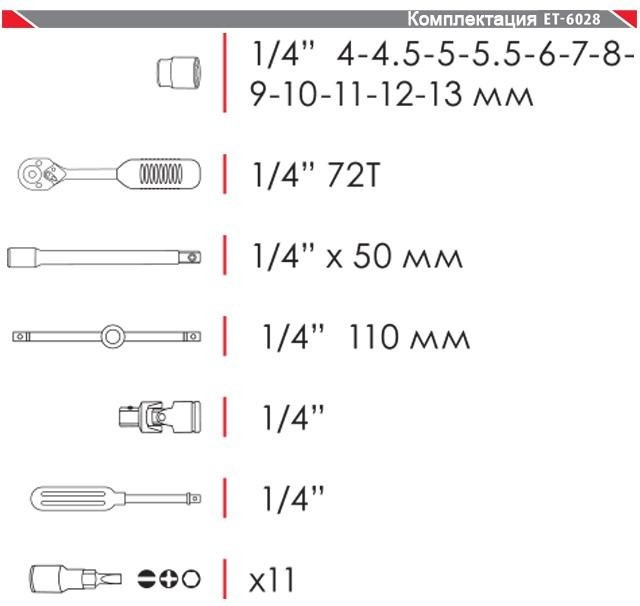 Довжина біт/торцевих головок - до 40 мм,