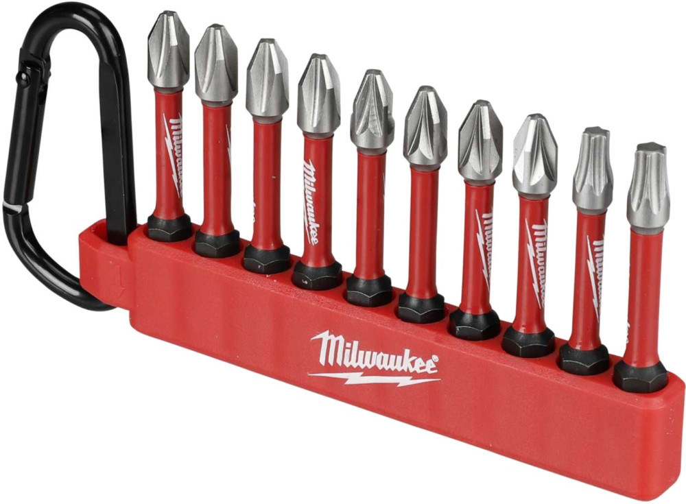 Набір біт Milwaukee SHOCKWAVE carabiner 2 (10 шт) 4xPH2, 4xPZ2, 1xTX20, 1xTX25 (4932492939)