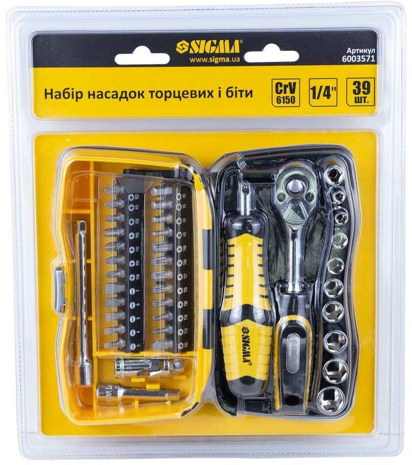 Набір інструментів Sigma насадок торцевих та біт 14 39шт CrV (6003571)