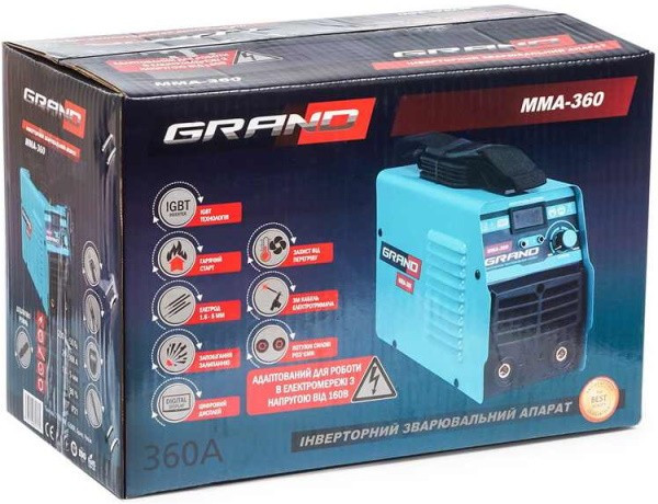 Сварочный аппарат инверторный Grand MMA-360 для ручной сварки (LCD-дисплей)