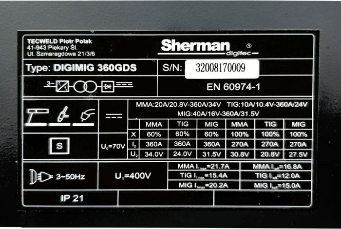 Зварювальний напівавтомат-інвертор Sherman DIGIMIG 360 GDS