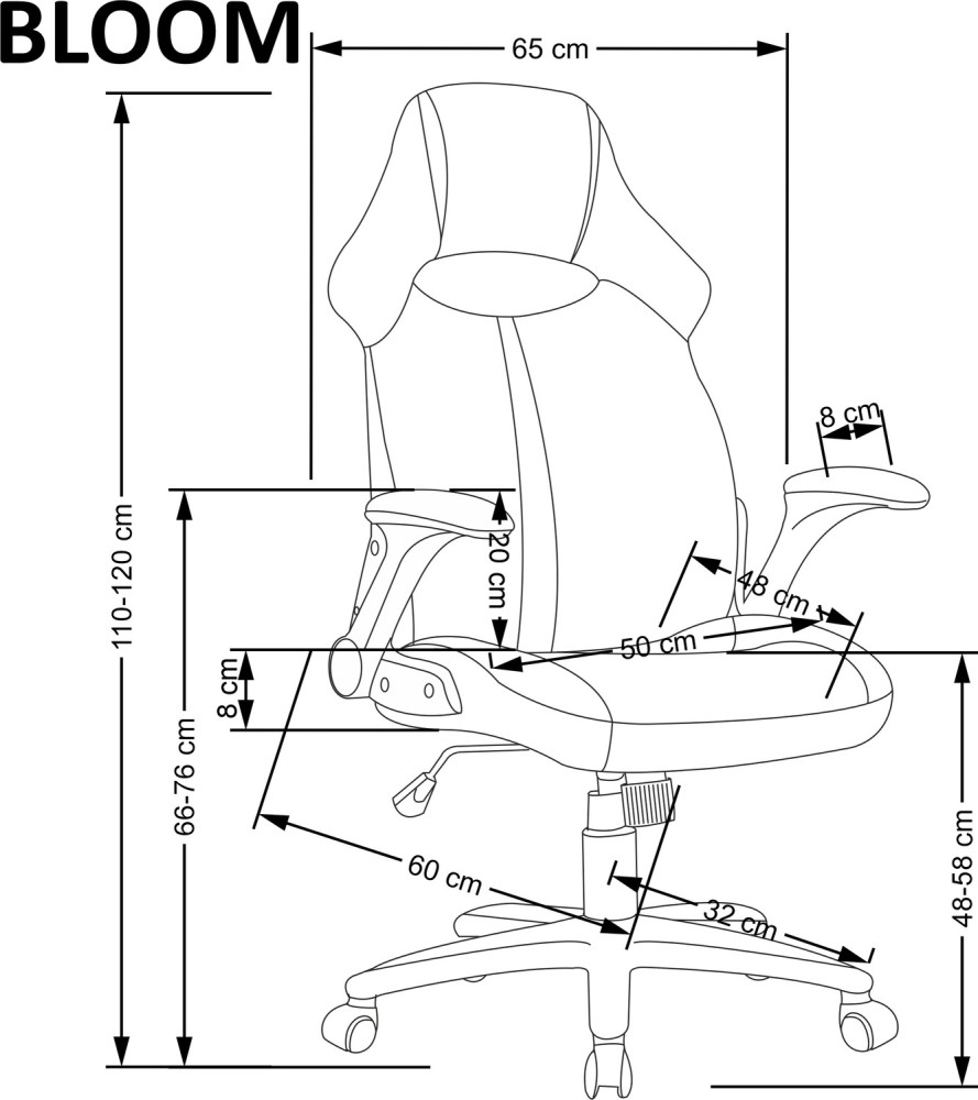 Висота підлокітника від сидіння - 20 см,