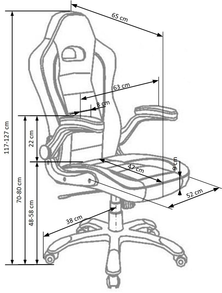 Висота підлокітника від сидіння - 22 см,