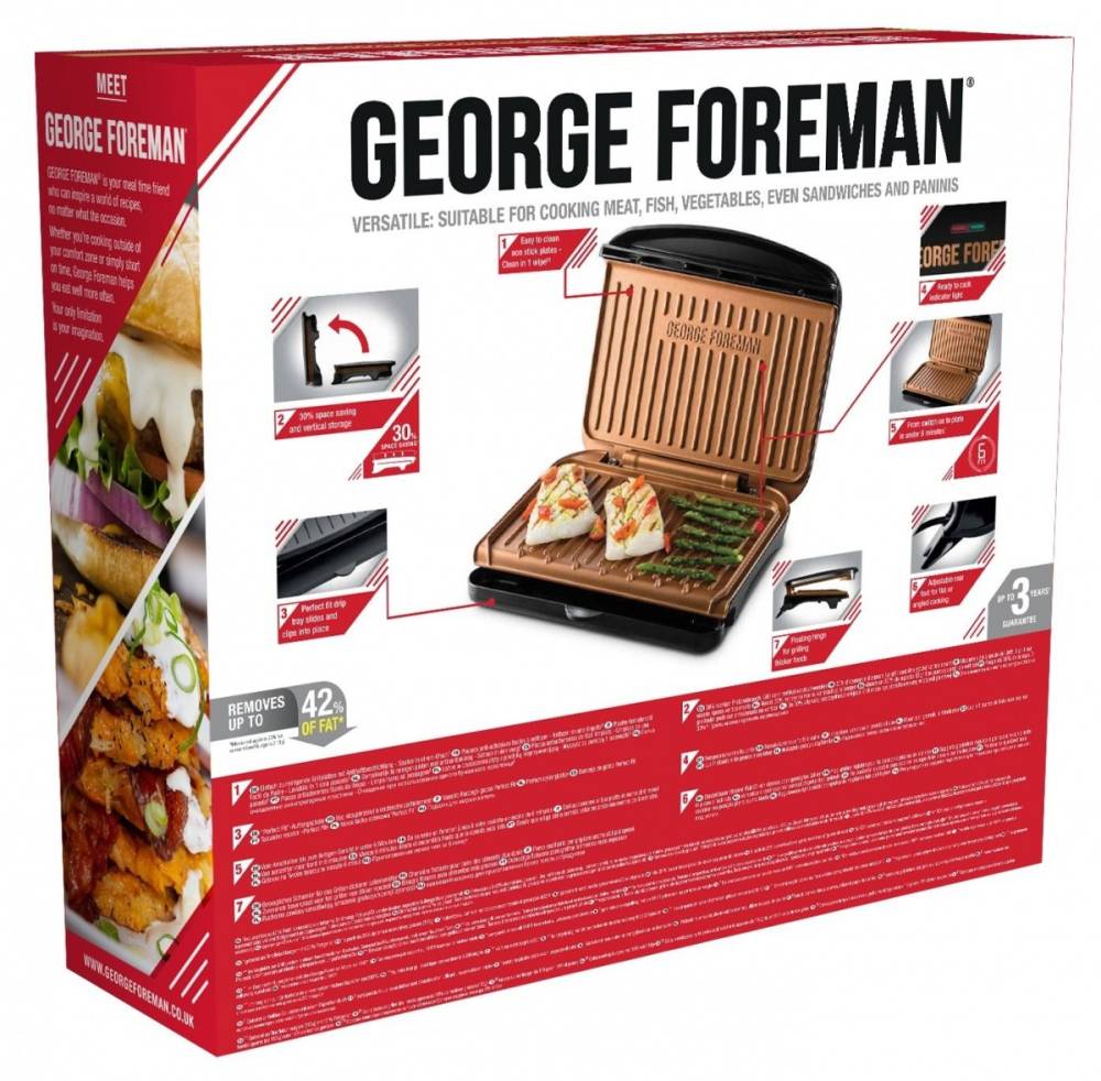 Гриль George Foreman 25811-56 Fit Grill Copper Medium, 1630 Вт, антипригарне покриття, чорний