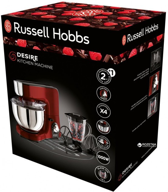 Кухонна машина Russell Hobbs Desire 1000Вт, чаша-метал, корпус-пластик, насадок-4, червоний (23480-56)