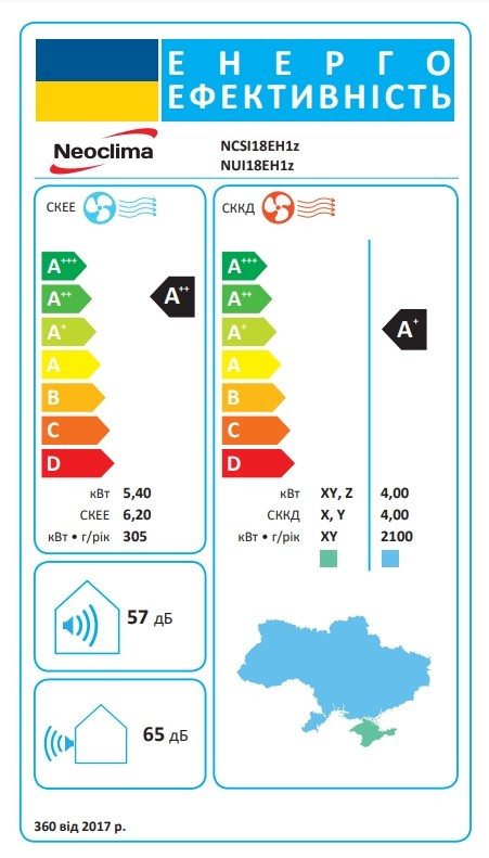 Енергоефективність SEER (охолодження) - A++,
