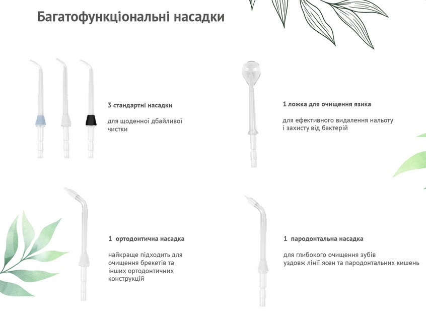стандартна для іригатора / 3 шт / ортодонтична (для брекетів) пародонтологічна (чистка кишень) для чищення язика