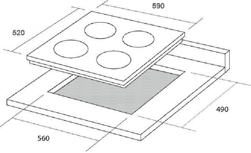 Розміри для монтажу (ШхГ) - 560x490 мм,