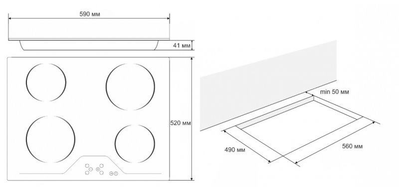 Розміри для монтажу (ШхГ) - 560x490 мм,