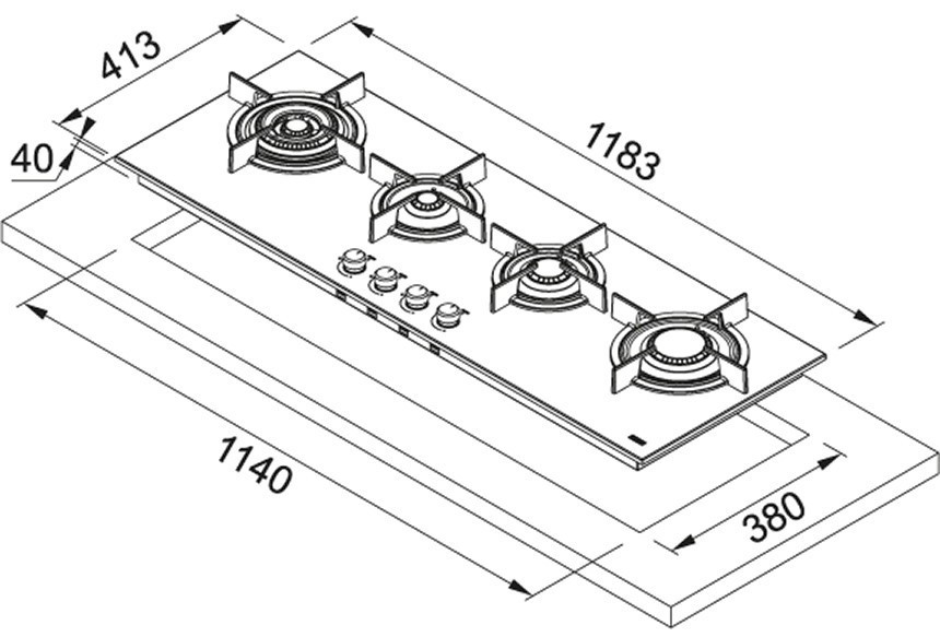 Розміри для монтажу (ШхГ) - 1140x380 мм,