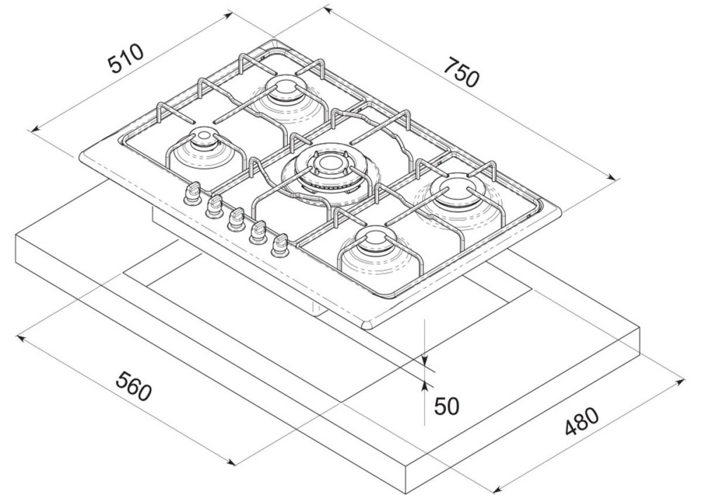 Розміри для монтажу (ШхГ) - 560x480 мм,