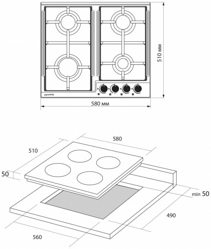Розміри для монтажу (ШхГ) - 560х490 мм,