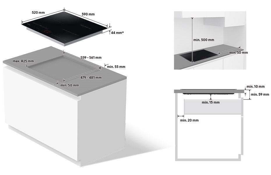 Розміри для монтажу (ШхГ) - 559x479 мм,