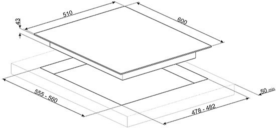 Розміри для монтажу (ШхГ) - 555x478 мм,