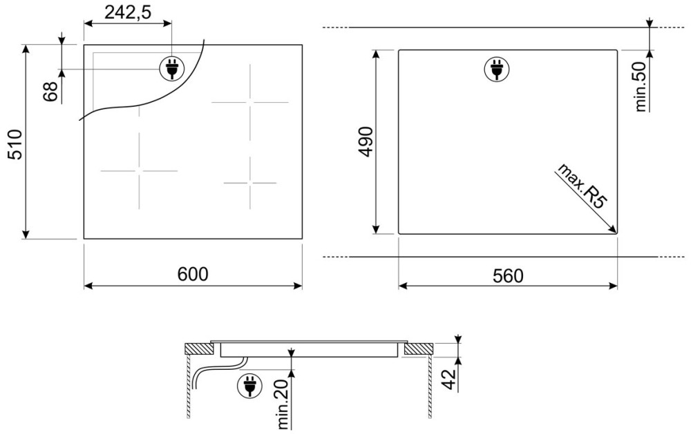 Розміри для монтажу (ШхГ) - 560x490 мм,