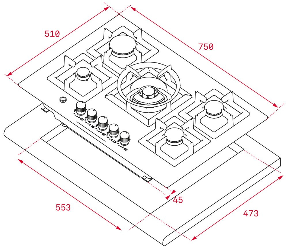 Розміри для монтажу (ШхГ) - 553x473 мм,